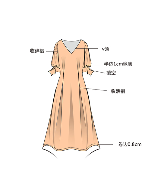 收活褶卷边连衣裙
