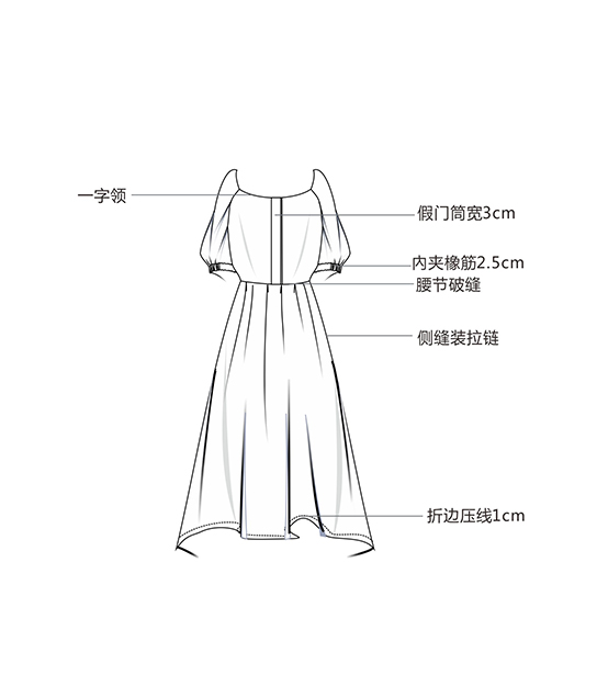 腰节破缝连衣裙