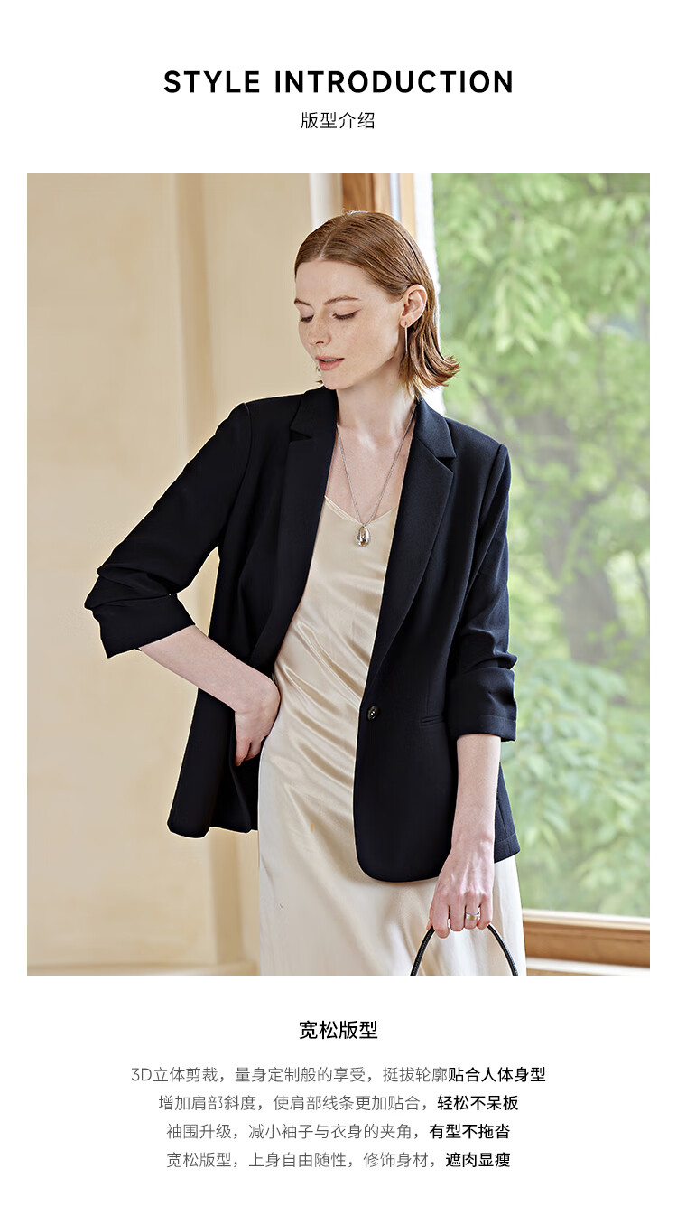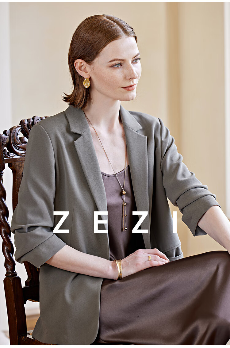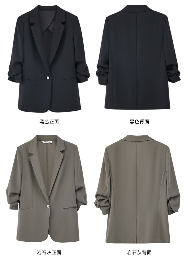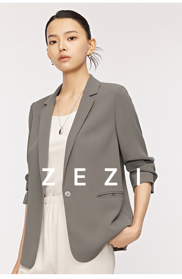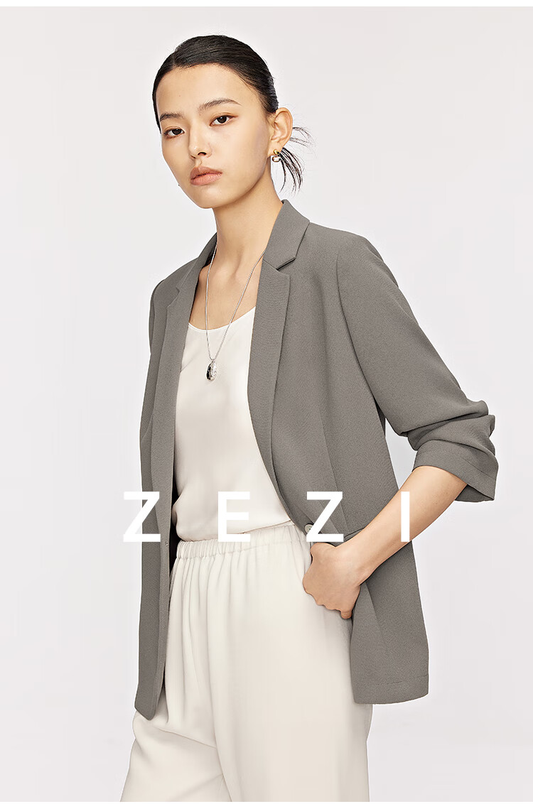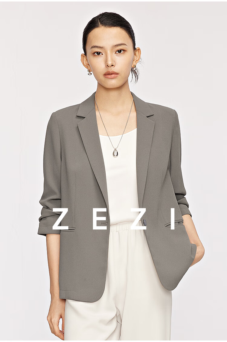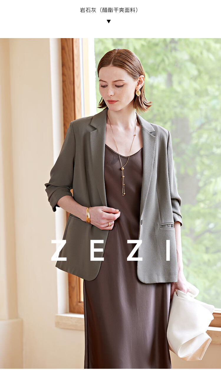 ZEZI西装外套女夏季西服薄款七分袖醋酯通勤正装修身简约时尚职场穿搭 岩石灰 XXL