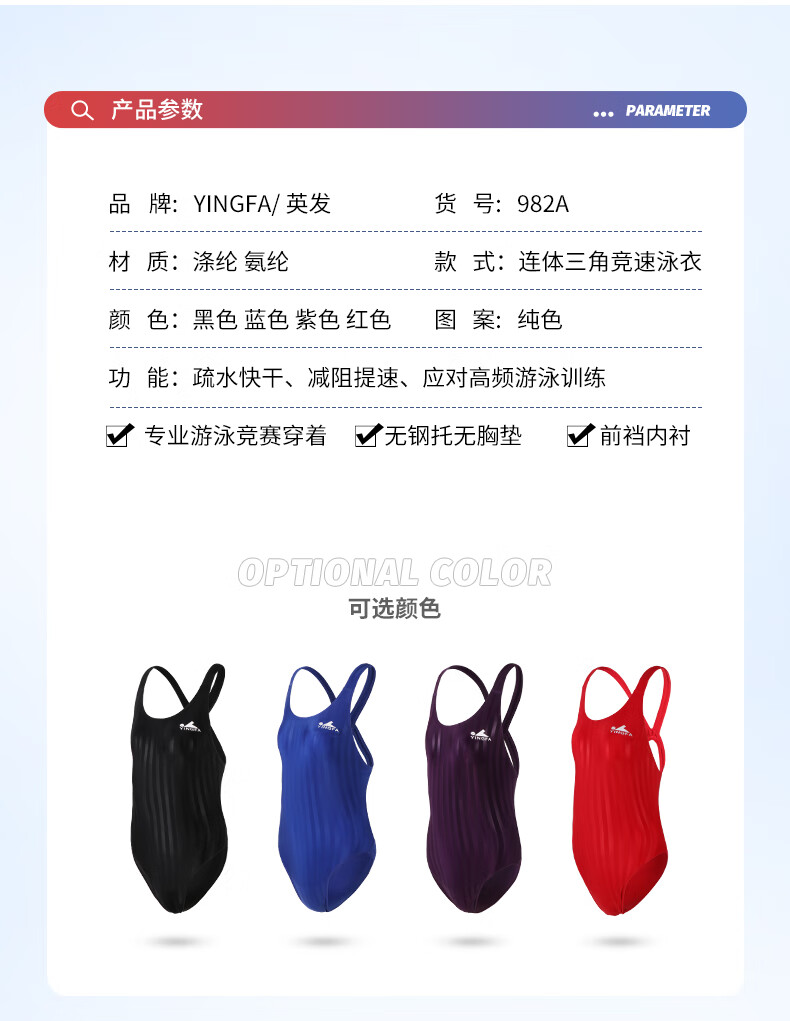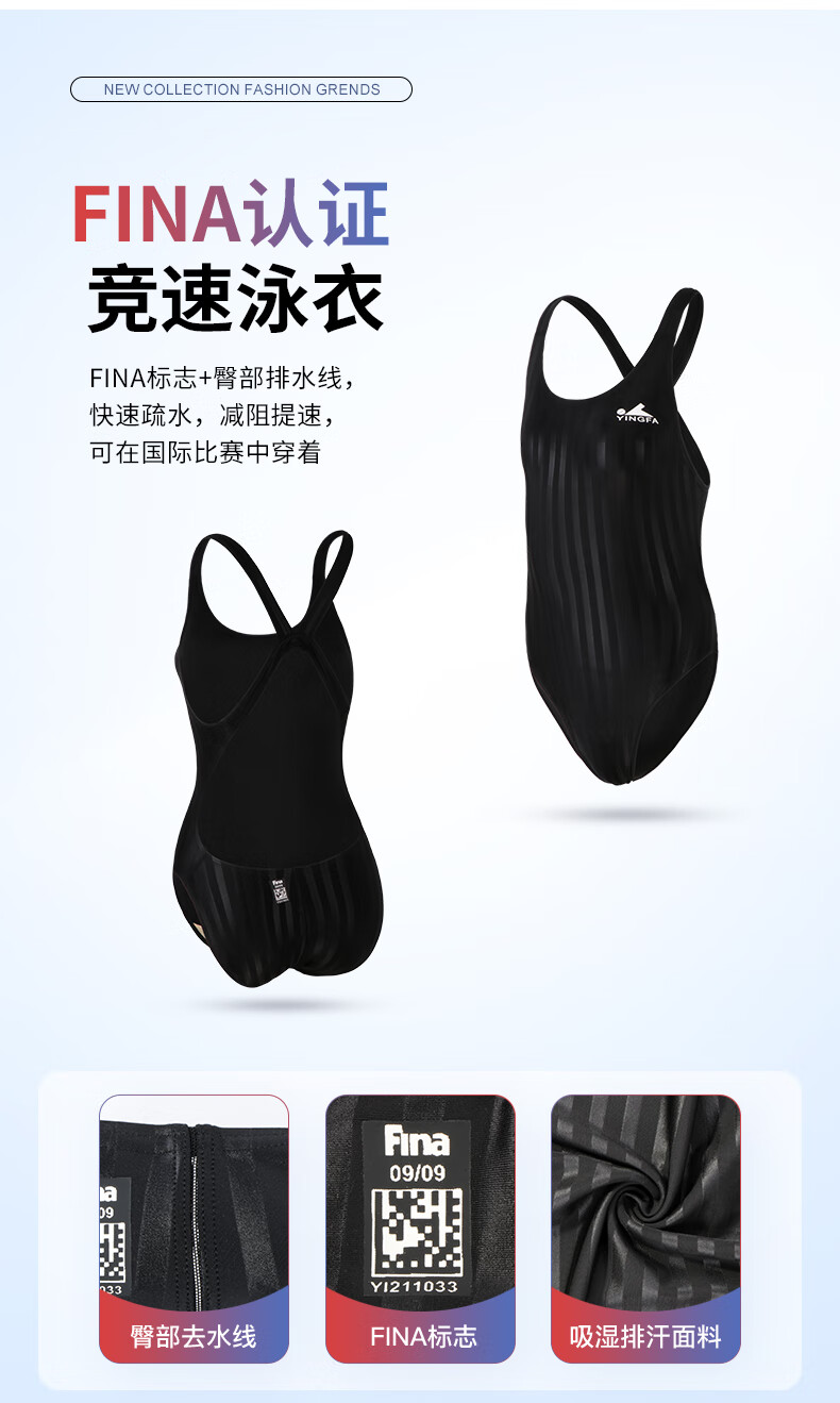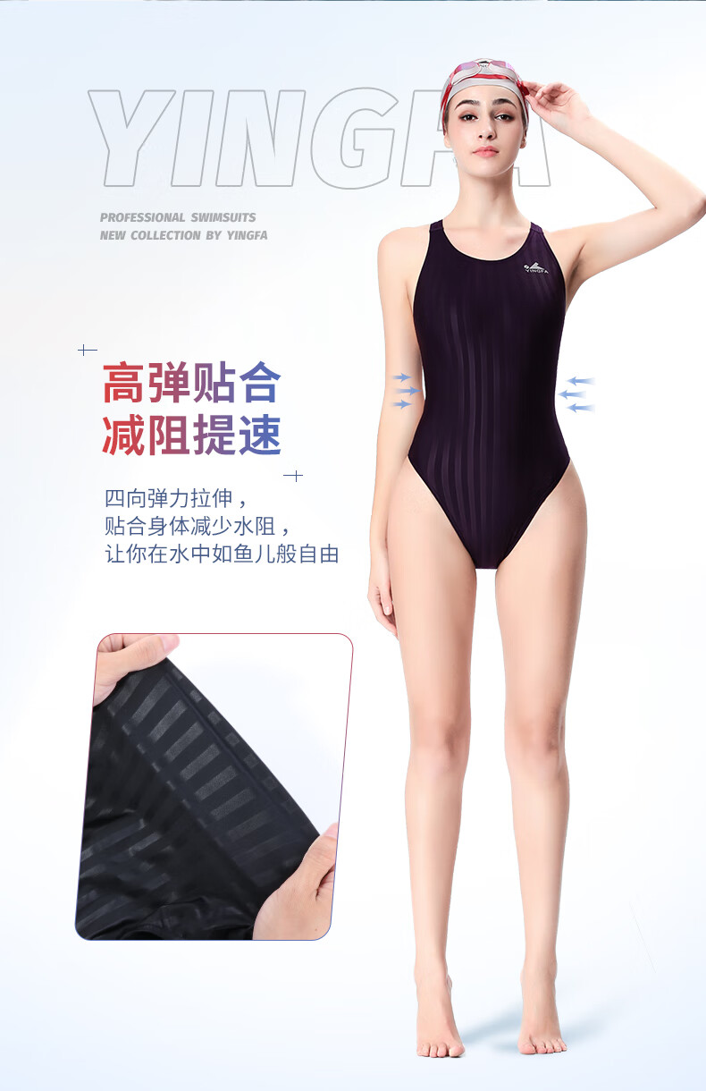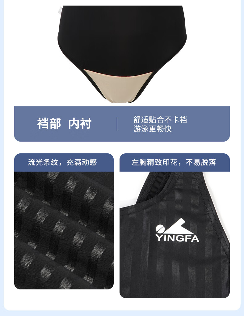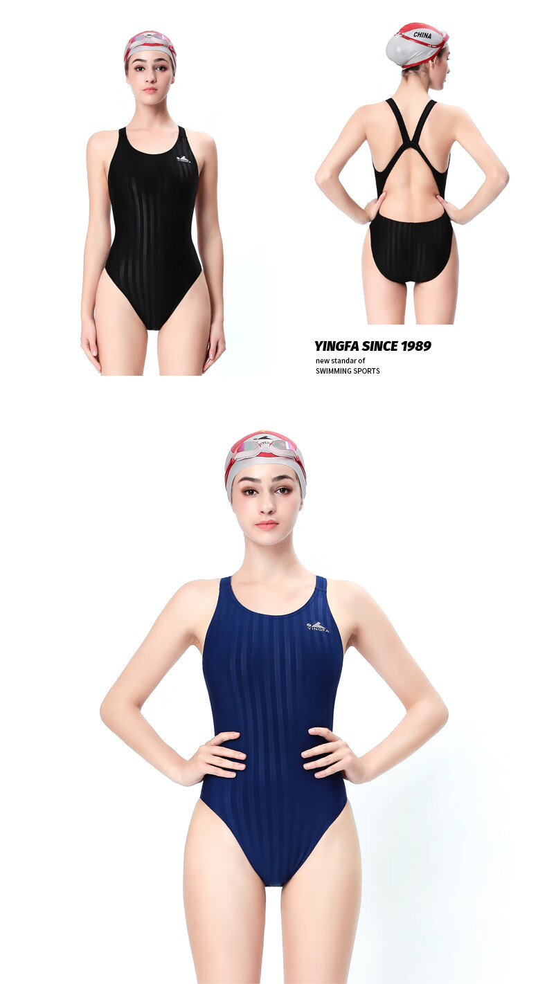 英发(YINGFA)专业连体三角泳衣女速干排水线游泳衣世界泳联认证训练比赛泳装 黑(条纹)【世界泳联认证】 S (建议135-145cm,25-35kg)