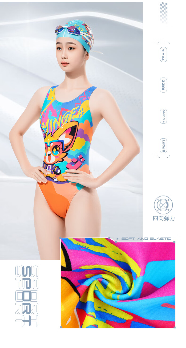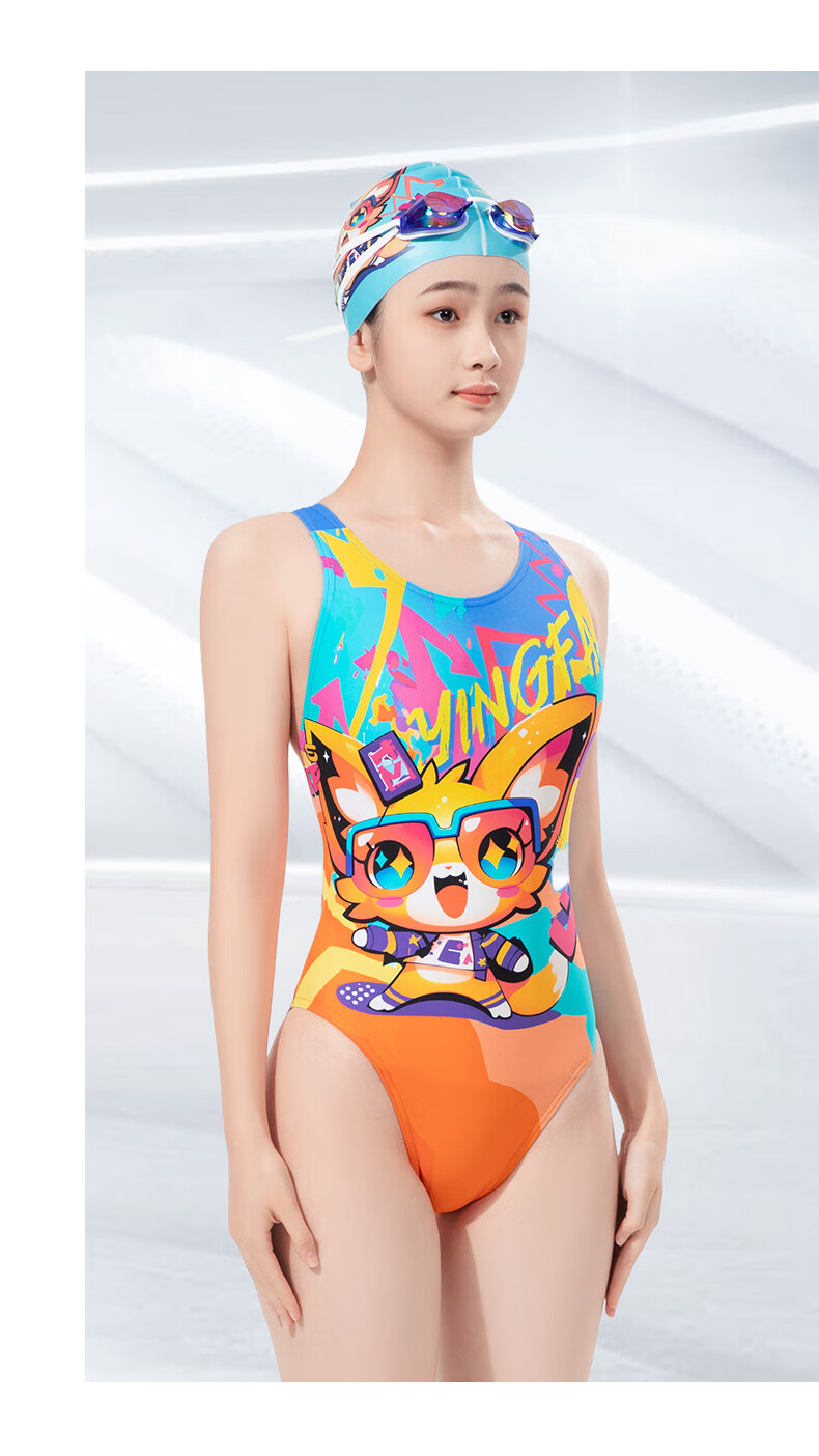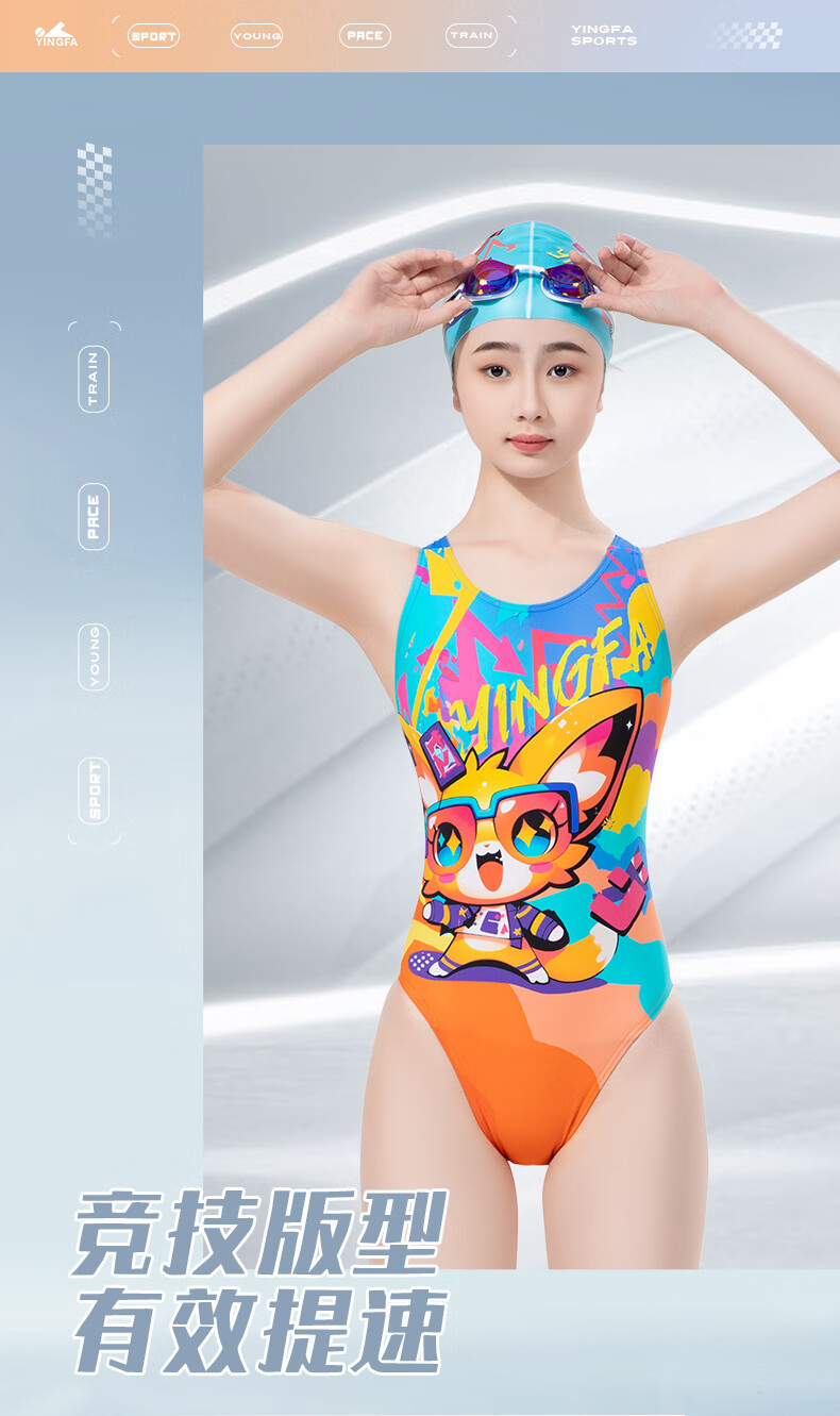 英发(YINGFA)竞技泳衣女新款连体三角防晒透气快干泳衣泡温泉印花显瘦运动泳装 花色 XS (建议125-135cm,15-25kg)