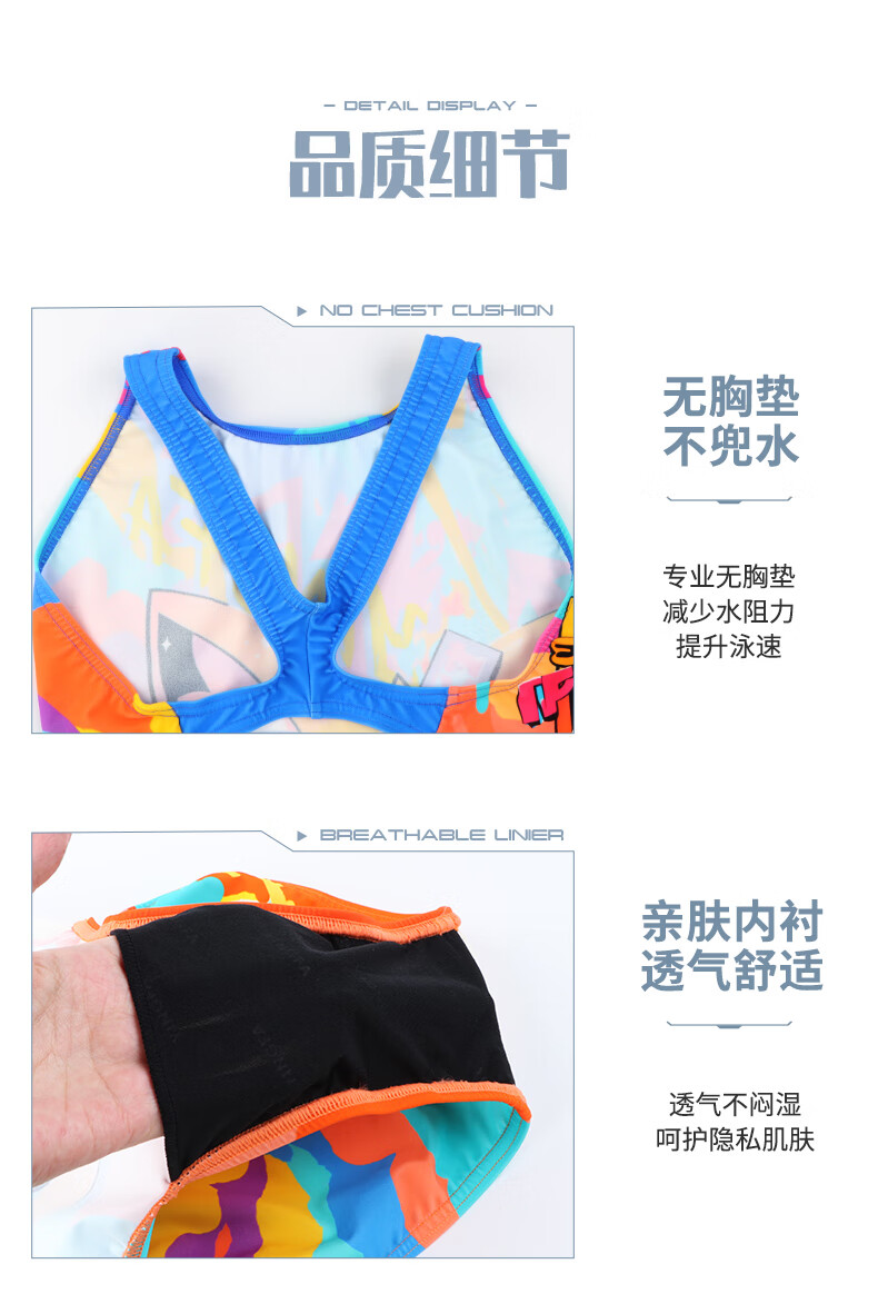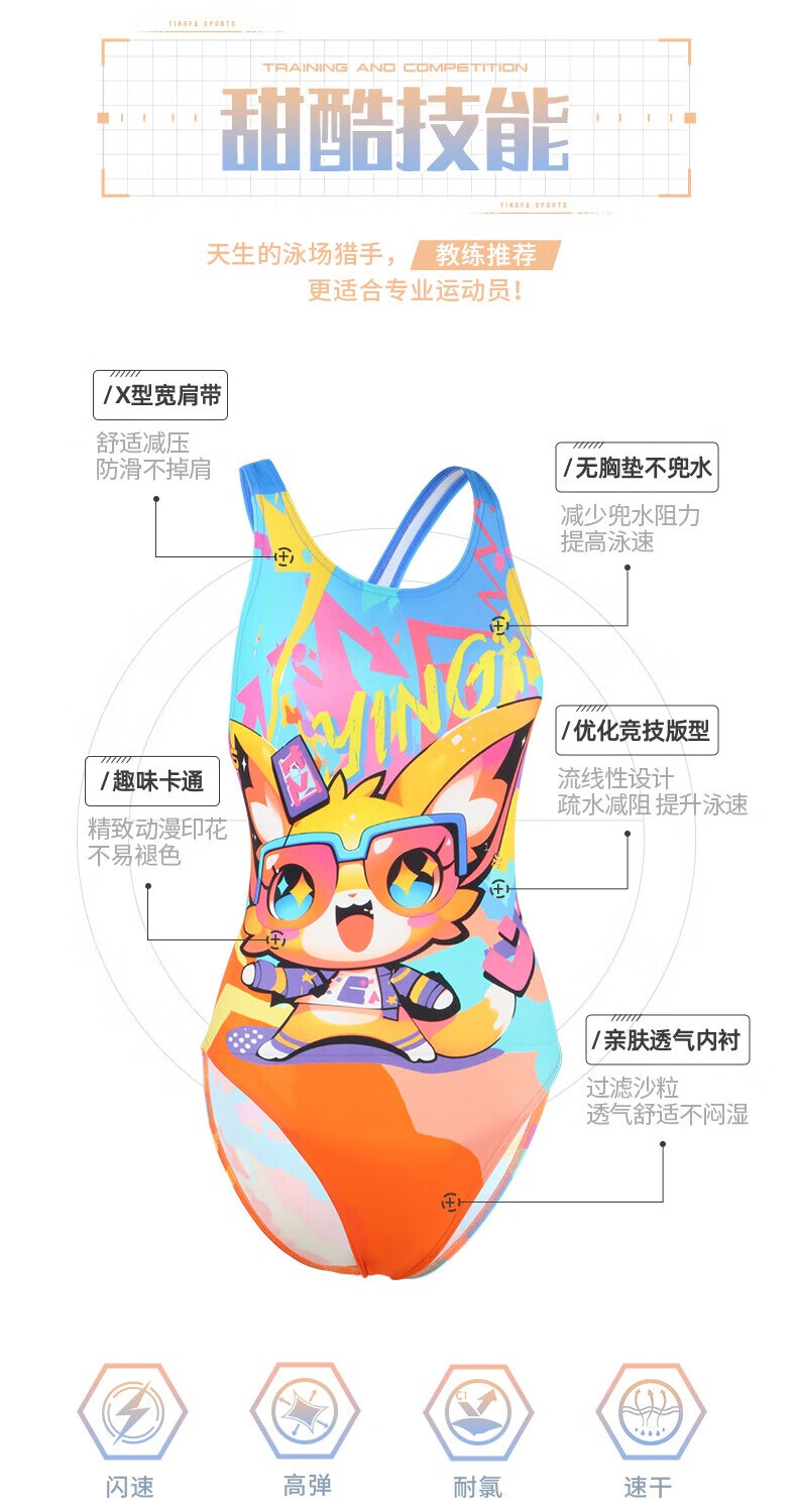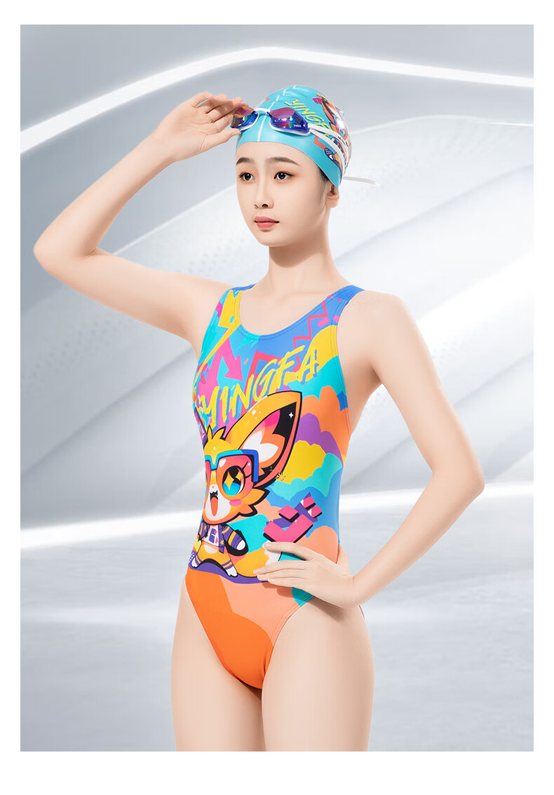 英发(YINGFA)竞技泳衣女新款连体三角防晒透气快干泳衣泡温泉印花显瘦运动泳装 花色 XS (建议125-135cm,15-25kg)