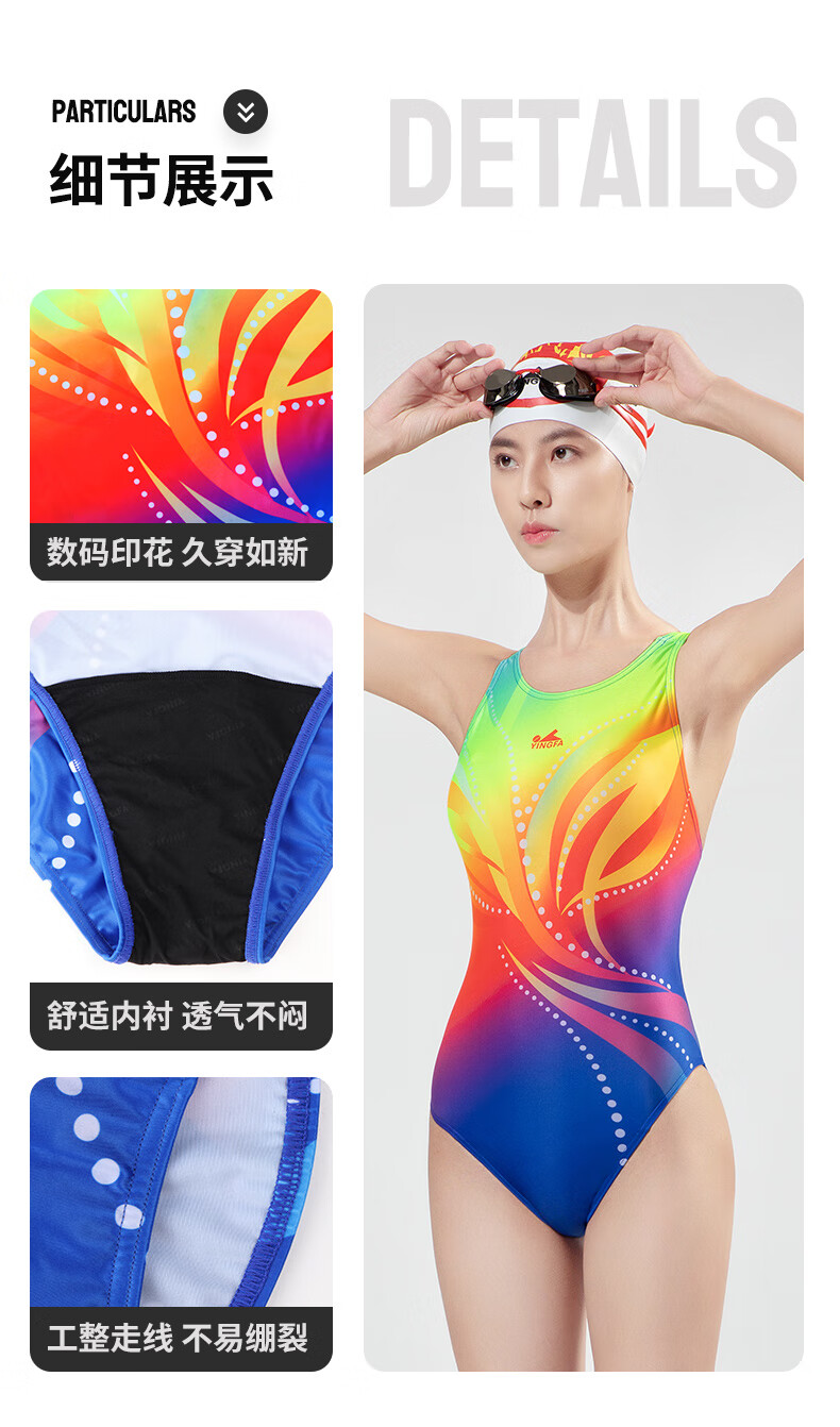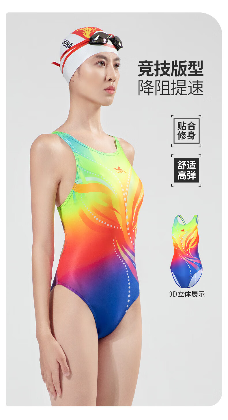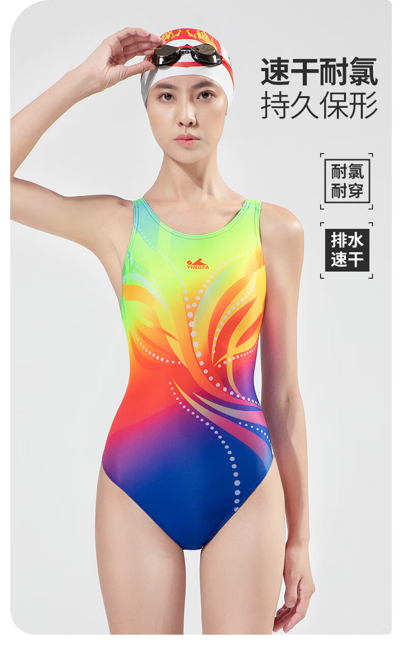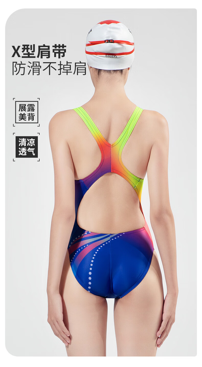 英发(YINGFA)泳衣女连体三角竞速专业运动训练泳装2025新款彩色耐氯速干游泳衣 花色 2XL (建议165-170cm,55-60kg)