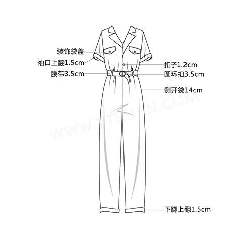 圆环扣腰带连体裤
