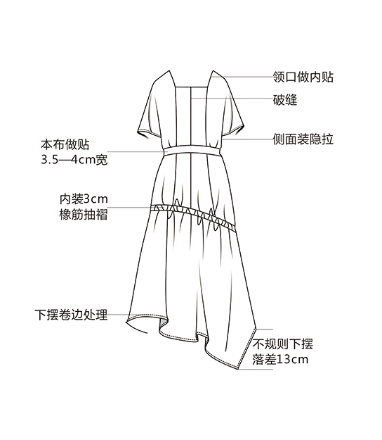 • 不规则破缝下卷边连衣裙