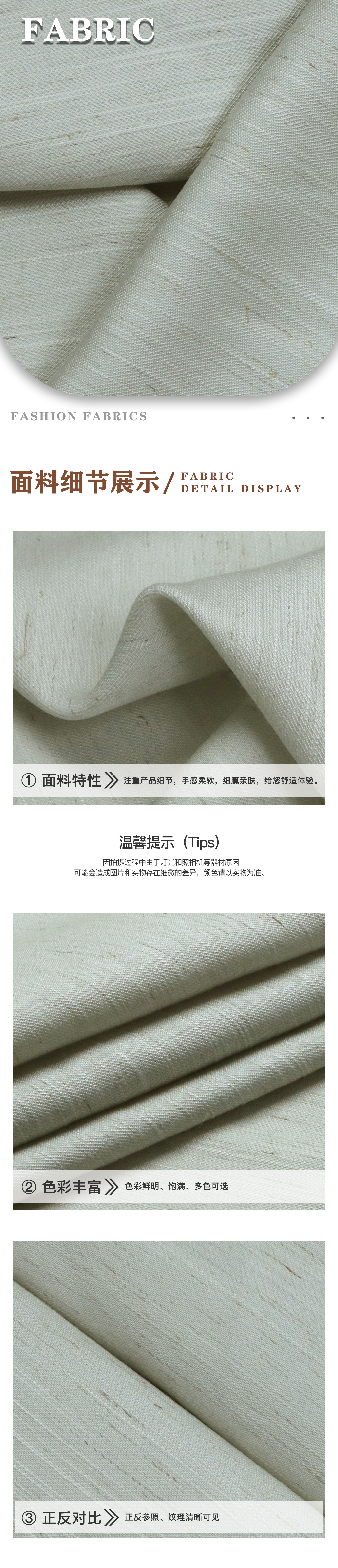 305#斜纹竹节麻 发布人:马咏思 供应商:广州市加色纺织厂 发布时间:2025-04-12 联系电话: 面料属性名称:305#斜纹竹节麻编号:305#斜纹竹节麻色号:色卡,1,2,3,4,5,6,7,8,9幅宽:150cm克重:150g/㎡成分:86%人棉9%涤纶5%亚麻
